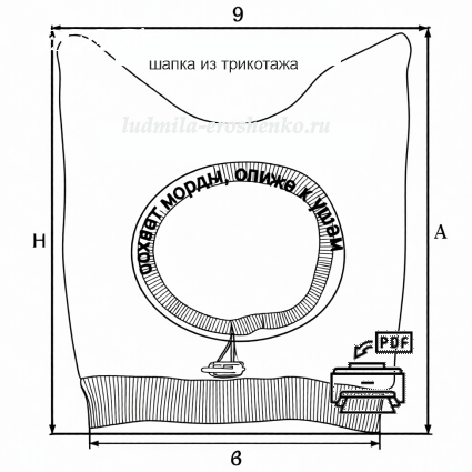 Выкройка шапки дана с припусками на швы 0,7см