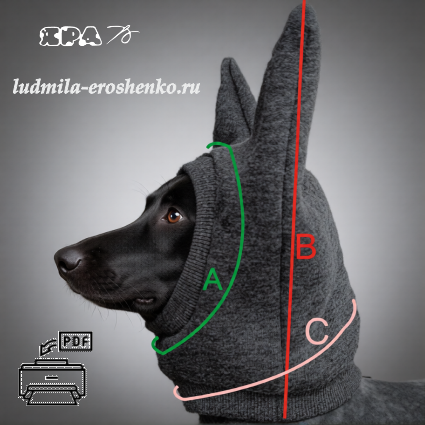 Прибавку на свободу облегания можно сделать совсем небольшую, т.к. мы шьем из трикотажа и шапка должна плотно облегать голову собаки.
